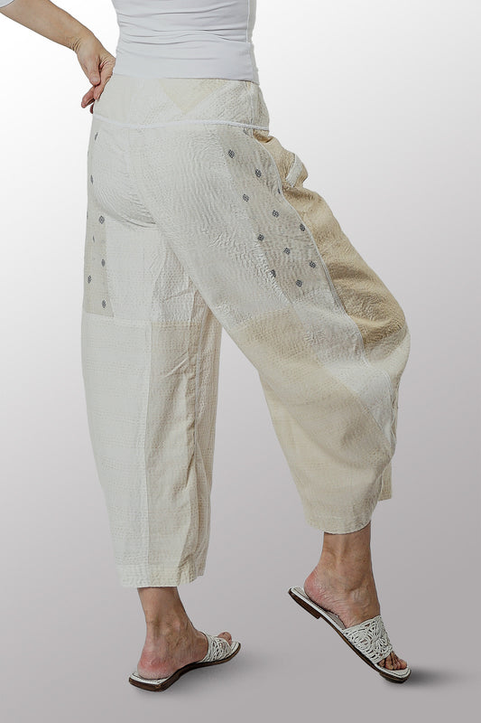 JAIPUR WHITE KANTHA KNEE TUCKED PANTS - jw2625-ivy -