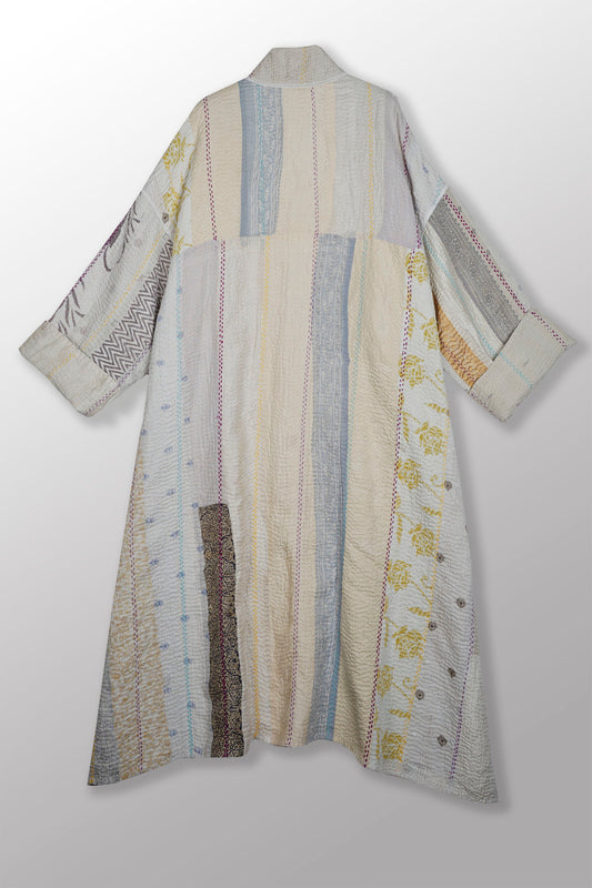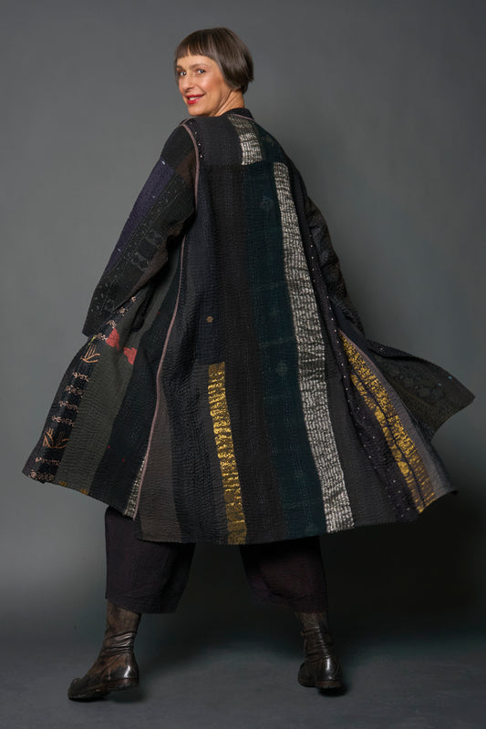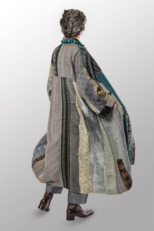 JEWEL WOVEN WITH VERTICAL PATCH KANTHA OVERSIZED COAT - jv4326-gry -
