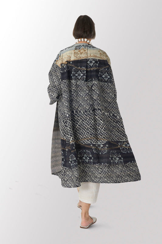 KIMONO COTTON KANTHA LONG DUSTER - kc2328-blu -