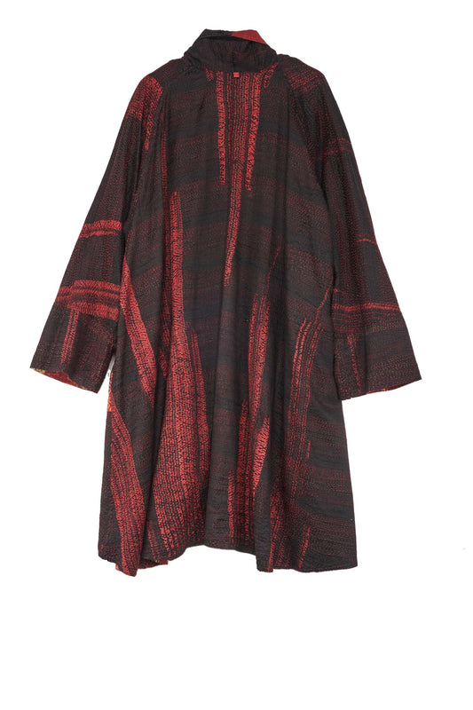 KIMONO PRINT KANTHA FLARE LONG JKT - kp2021-red -