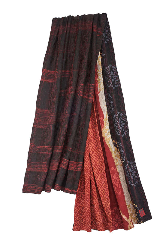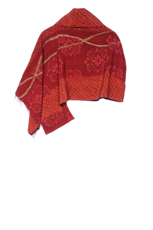KIMONO PRINT KANTHA SHAWL LARGE - kp2803-red -