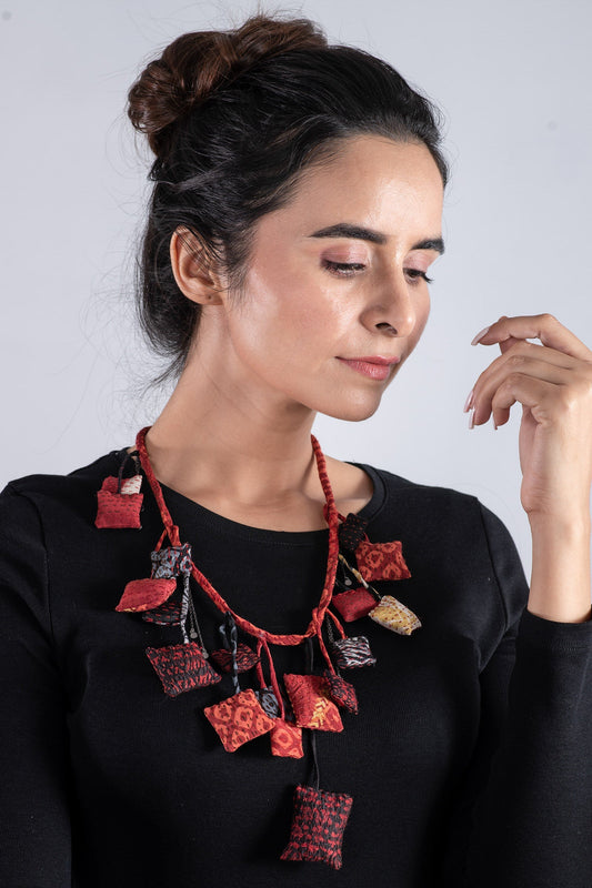 KIMONO PRINT KANTHA PILLOW NECKLACE - kp2718-red -