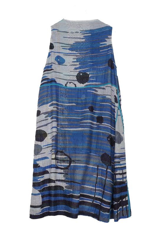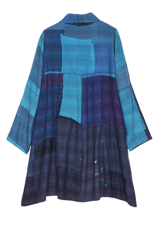 LANDSCAPE FRAYED PATCH KANTHA A-LINE DUSTER - lf2311-blu -