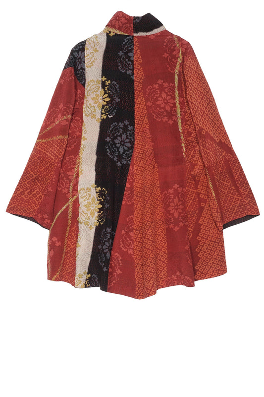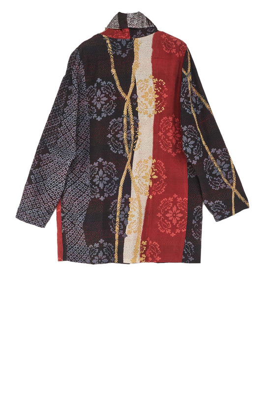 KIMONO PRINT KANTHA POCKET JKT - kp2002-red -