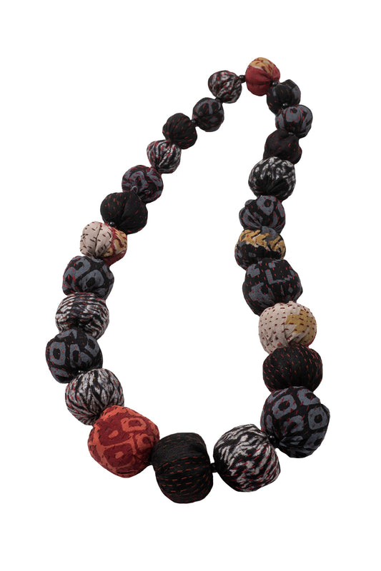 KIMONO PRINT KANTHA NUTS MEDIUM NECKLACE - kp2701-blk -