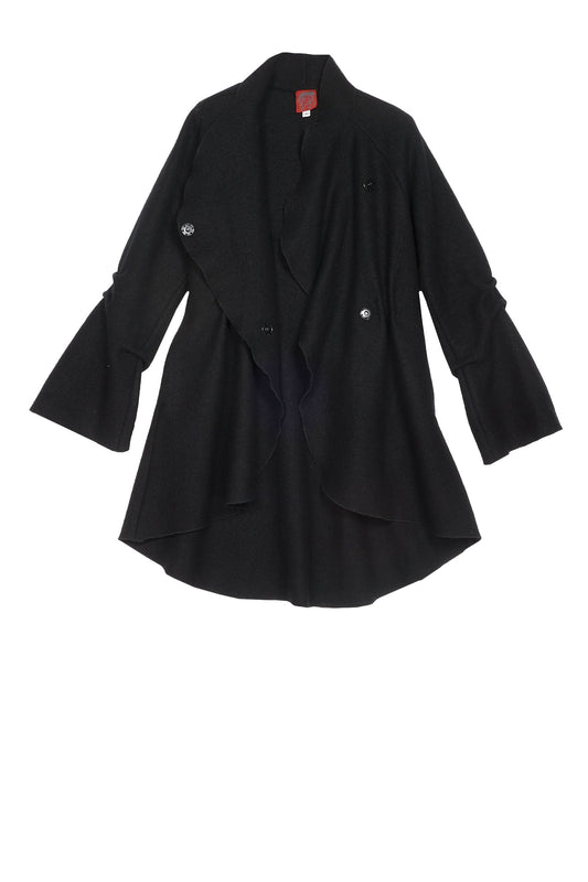 BOILED WOOL TUCKED MEDIUM COAT - wb1315-blk -