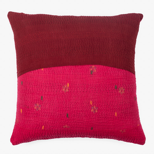 Landscape Handmade Vintage Kantha Pillow Sham -Red -