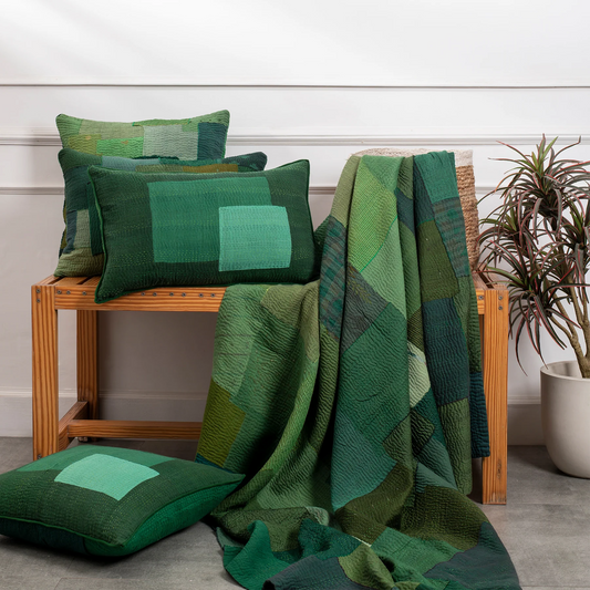 Landscape Handmade Vintage Kantha Table Runner -Green -