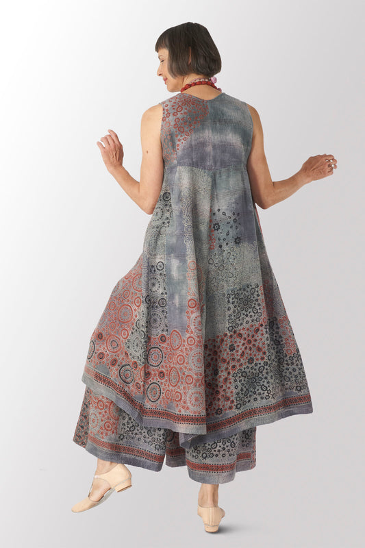 MANHATTAN AJRAKH KANTHA HIGH-WAIST DRESS - mh2447-gry -