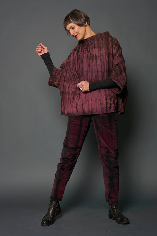 MARIGOLD PRINT WITH OVERDYE KANTHA BOAT NECK DOLMAN TOP - ov-mg2t100-tuq -