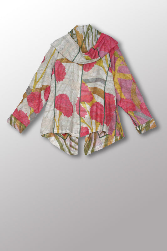 MARIGOLD PRINT KANTHA HOODED JACKET - mg2042-pik -