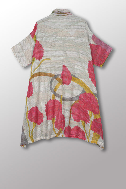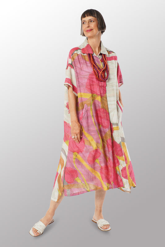 MARIGOLD PRINT KANTHA HALF SLV. SHIRT DRESS - mg2429-pik -
