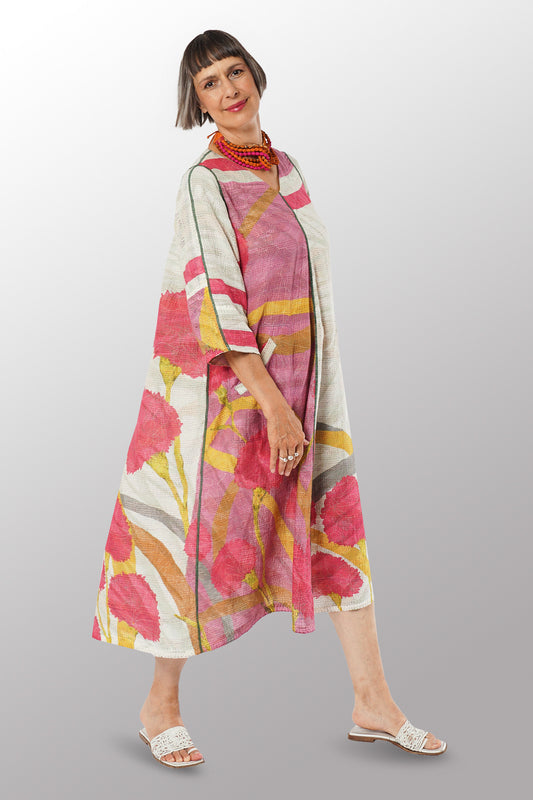 MARIGOLD PRINT KANTHA POINTI HEM DRESS WITH SLEEVES - mg2437-pik -