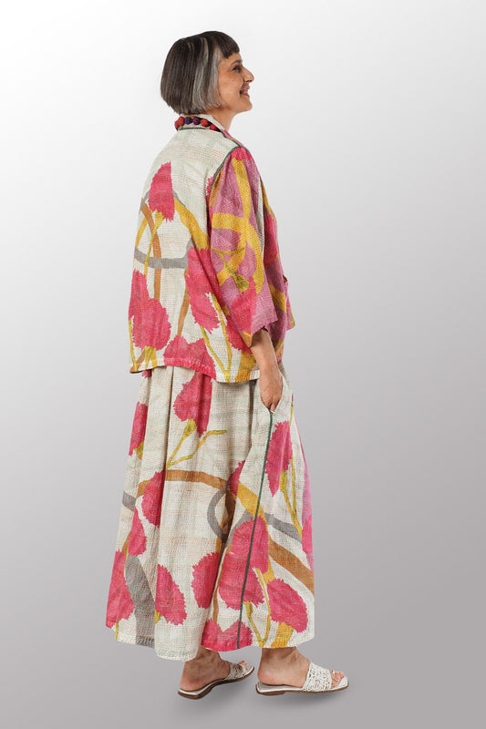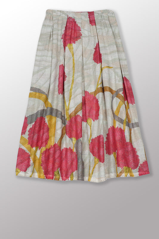 MARIGOLD PRINT KANTHA TUCKED GATHER SKIRT - mg2663-pik -