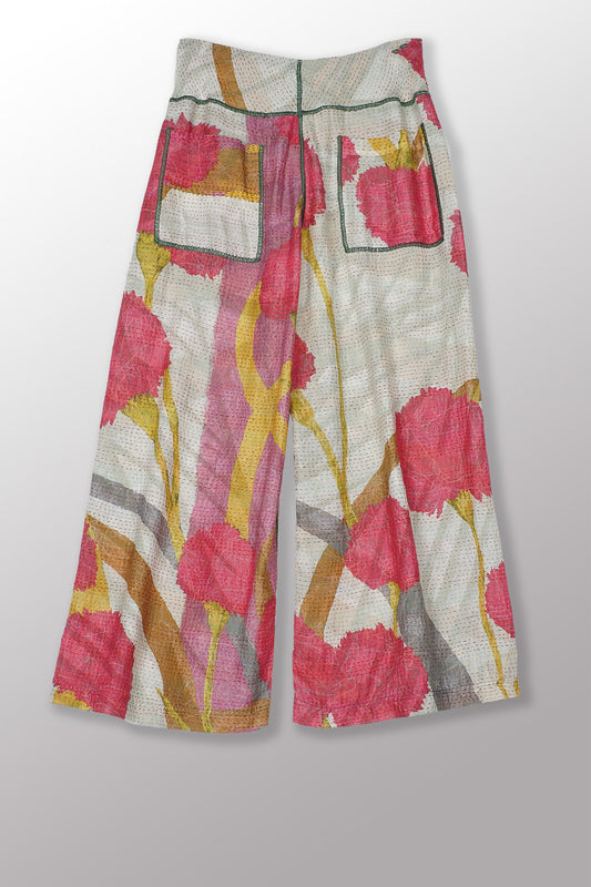 MARIGOLD PRINT KANTHA MID RISE WIDE LEG PANTS - mg2665-pik -