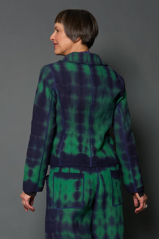 MONE SHIBORI TIE DYE KANTHA A-LINE JACKET - ms5003-tuq -
