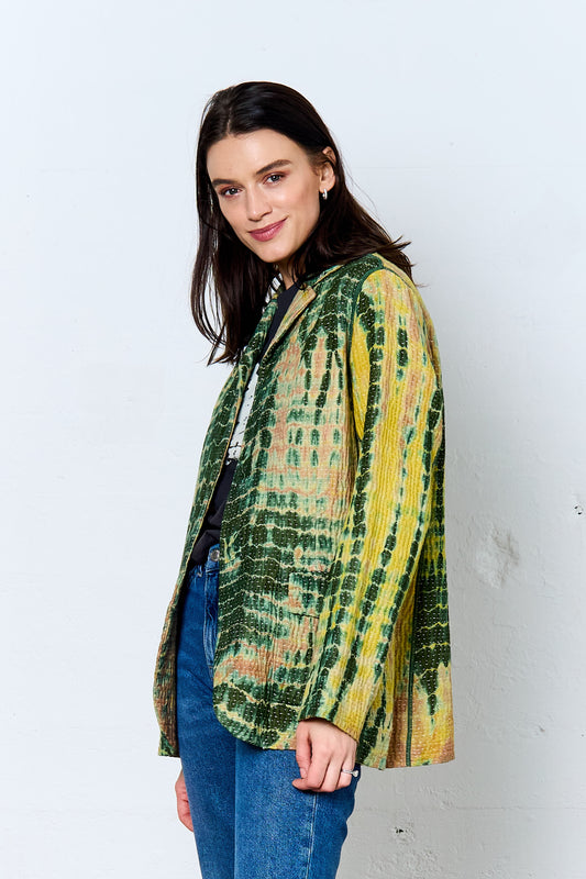 MONE SHIBORI TIE DYE KANTHA BASIC JACKET - ms5052-grn -