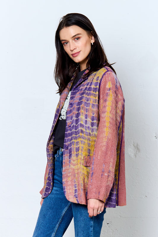 MONE SHIBORI TIE DYE KANTHA BASIC JACKET - ms5052-prp -