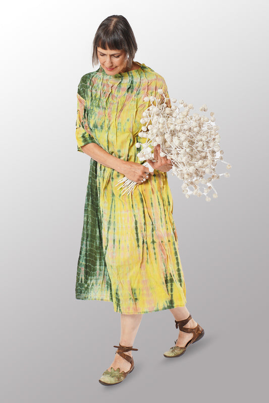MONE SHIBORI TIE DYE FUNNEL NECK DRESS - ms1455-grn -