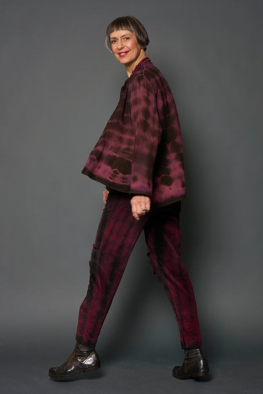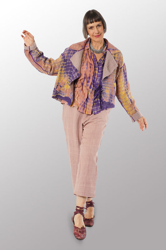 MONE SHIBORI TIE DYE KANTHA LAPELED SINGLE SHORT JACKET - ms5087-prp -