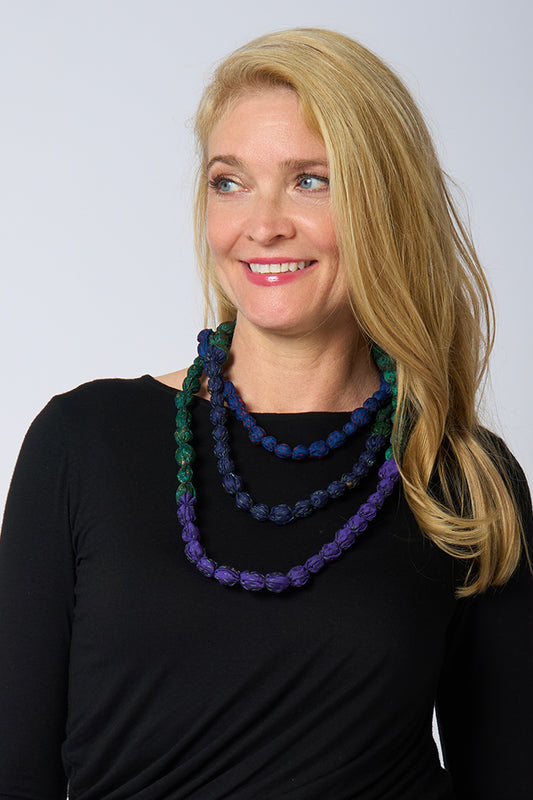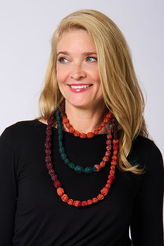 MONE SHIBORI TIE DYE KANTHA TIE-BEADS LONG NECKLACE - ms2707-tel -