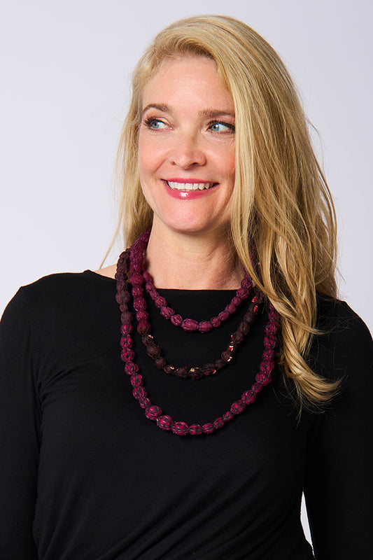 MONE SHIBORI TIE DYE KANTHA TIE-BEADS LONG NECKLACE - ms2707-pik -
