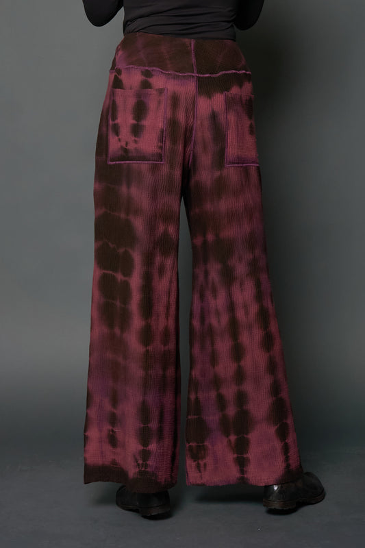 MONE SHIBORI TIE DYE KANTHA MID RISE WIDE LEG PANTS LONG - ms4673-pik -