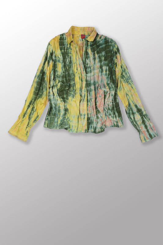 MONE SHIBORI TIE DYE WAVY TUCK CROPPED SHIRT - ms1579-grn -