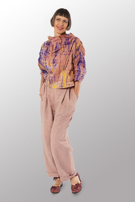 MONE SHIBORI TIE DYE WAVY TUCK FUNNEL NECK TOP - ms1582-prp -