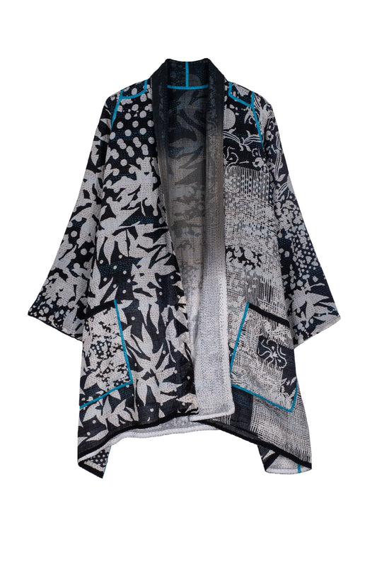 MONOTONE TWILIGHT PRINT KANTHA A-LINE JKT - tp2003-blk -
