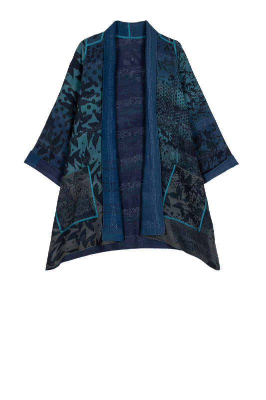 MONOTONE TWILIGHT PRINT KANTHA A-LINE JKT - tp2003-blu -