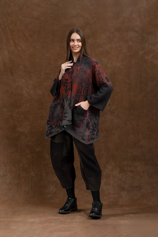 MONOTONE TWILIGHT PRINT KANTHA A-LINE JKT - tp4003-red -
