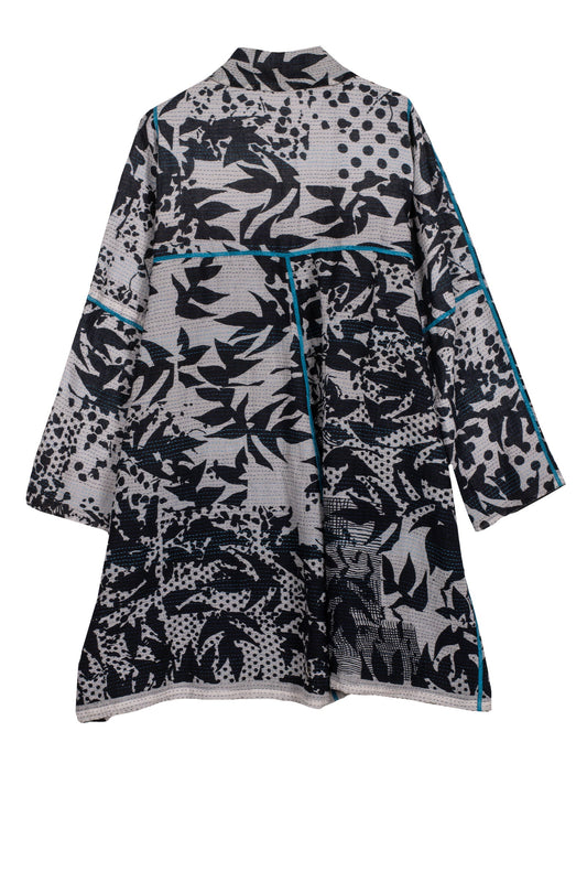 MONOTONE TWILIGHT PRINT KANTHA A-LINE COAT P - tp4336-cblua -