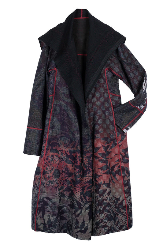 MONOTONE TWILIGHT PRINT KANTHA A-LINE LONG COAT - tp4302-red -