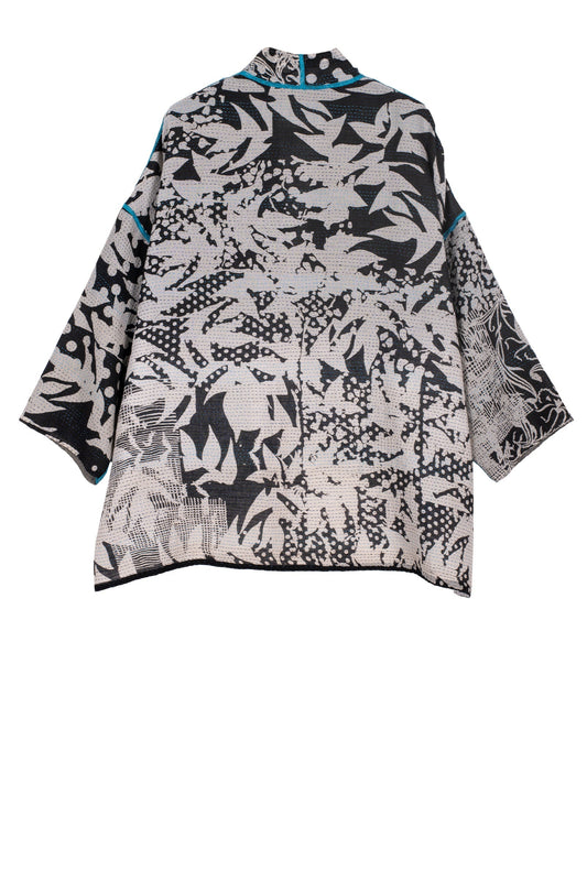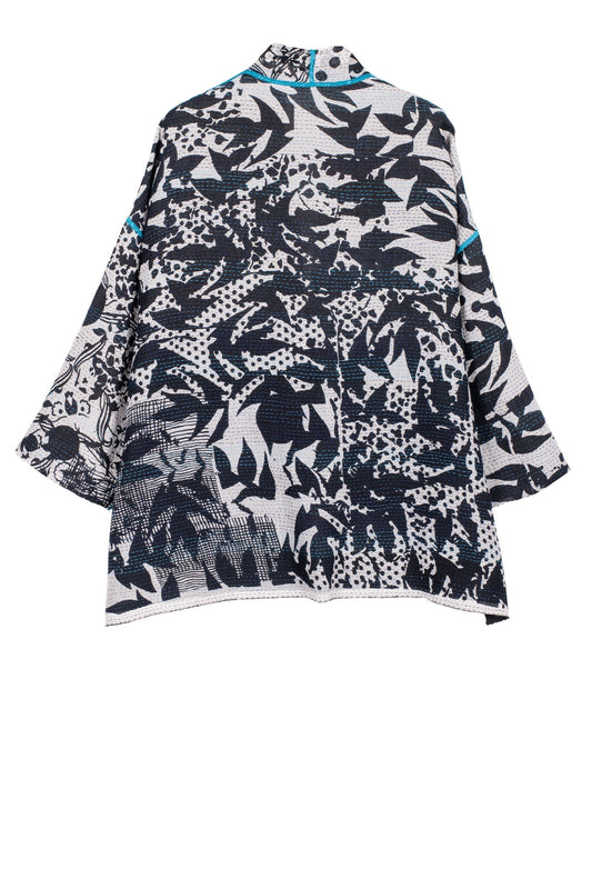 MONOTONE TWILIGHT PRINT KANTHA MINI KIMONO JKT - tp2055-blk -
