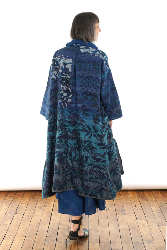 MONOTONE TWILIGHT PRINT KANTHA LONG DUSTER - tp2328-blu -