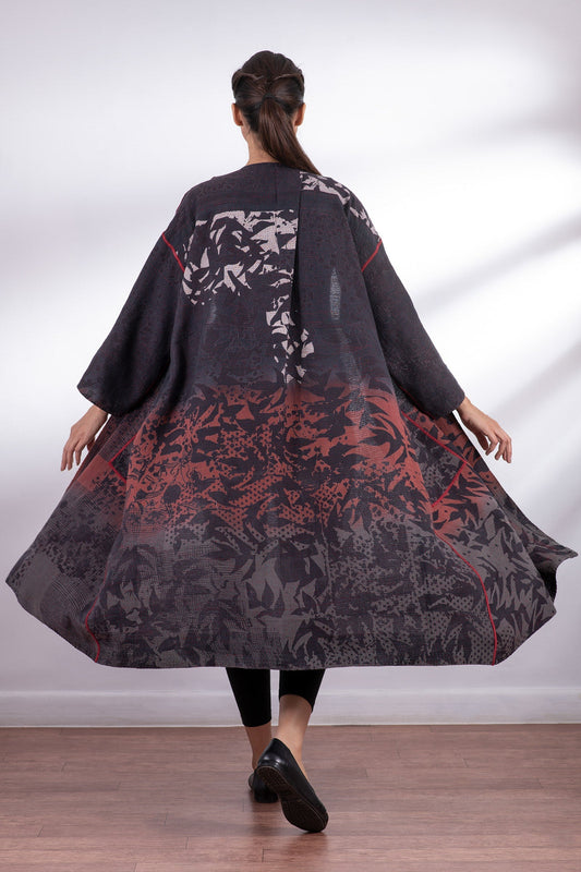 MONOTONE TWILIGHT PRINT KANTHA LONG DUSTER - tp2328-red -