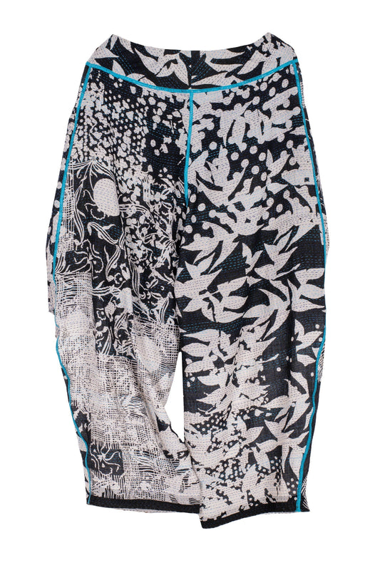 MONOTONE TWILIGHT PRINT KANTHA KNEE TUCKED PANTS - tp2625-blk -