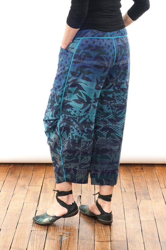 MONOTONE TWILIGHT PRINT KANTHA KNEE TUCKED PANTS - tp2625-blu -