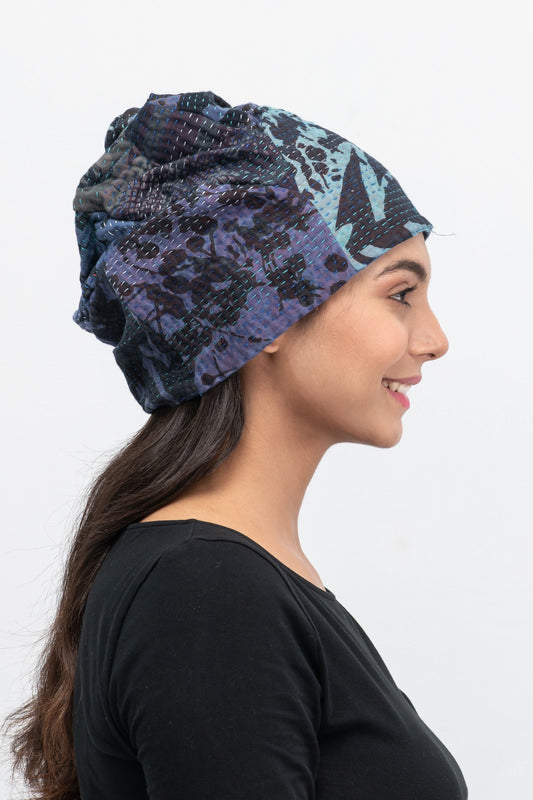 MONOTONE TWILIGHT PRINT KANTHA PATCHWORK HAT - tp4880-blu -