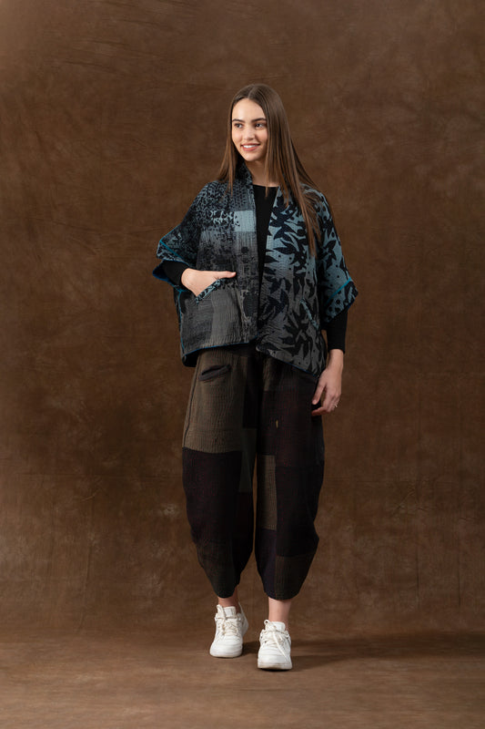 MONOTONE TWILIGHT PRINT KANTHA KNEE TUCKED PANTS - tp2625-cha -