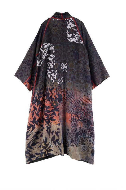 MONOTONE TWILIGHT PRINT KANTHA KIMONO LONG JKT - tp4005-red -