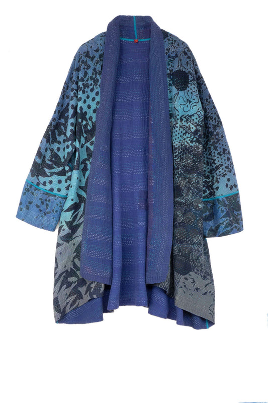 MONOTONE TWILIGHT PRINT KANTHA KIMONO LONG JKT - tp4005-blu -