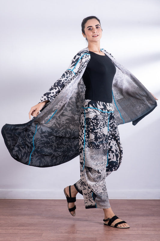 MONOTONE TWILIGHT PRINT KANTHA LONG DUSTER - tp2328-wht -
