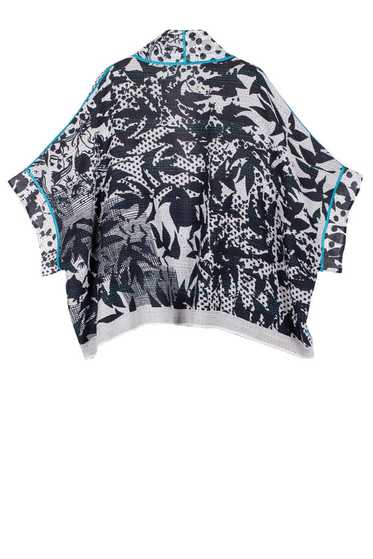 MONOTONE TWILIGHT PRINT KANTHA MINI PONCHO - tp4060-blu -
