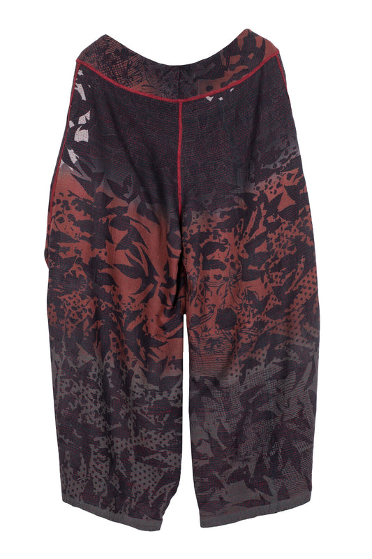 MONOTONE TWILIGHT PRINT KANTHA KNEE TUCKED PANTS - tp2625-red -