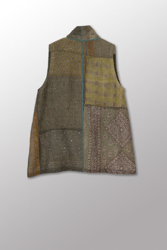 MUJI PATCH KANTHA KIMONO VEST SHORT - mp4248-grn -
