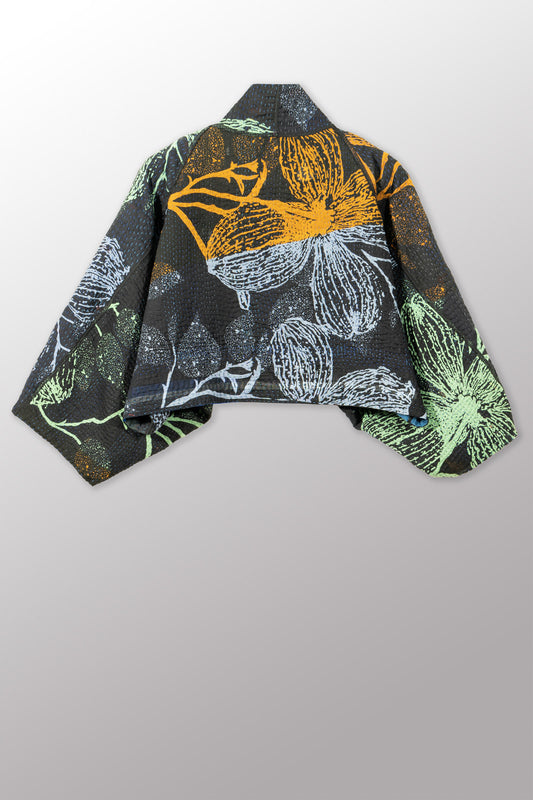 NIGHT FLOWERS KANTHA SHORT JACKET - nl4007-prp -