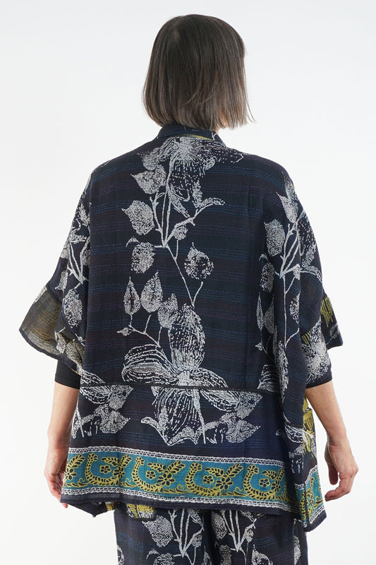 ORGANIC LEAVES KANTHA WIDE SHIRT - ol2546-blk -