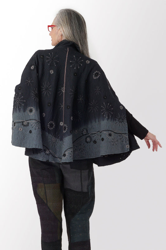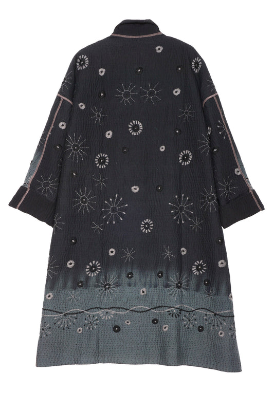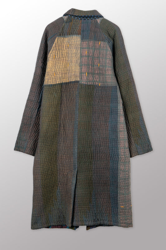 OQ5337-CBLU002M @QUILTED OVERDYE COTTON KANTHA RAGLAN SLEEVE COAT